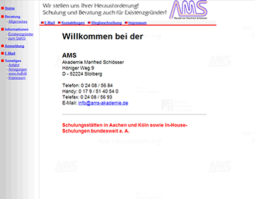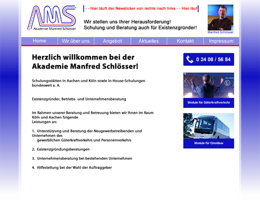 Referenzen für die Arbeit unseres Webdesigners sind unsere eigene Webseite, auf der Sie sich gerade befinden, wie auch die Neugestaltung der Webseite der Akadamie Manfred Schlösser: